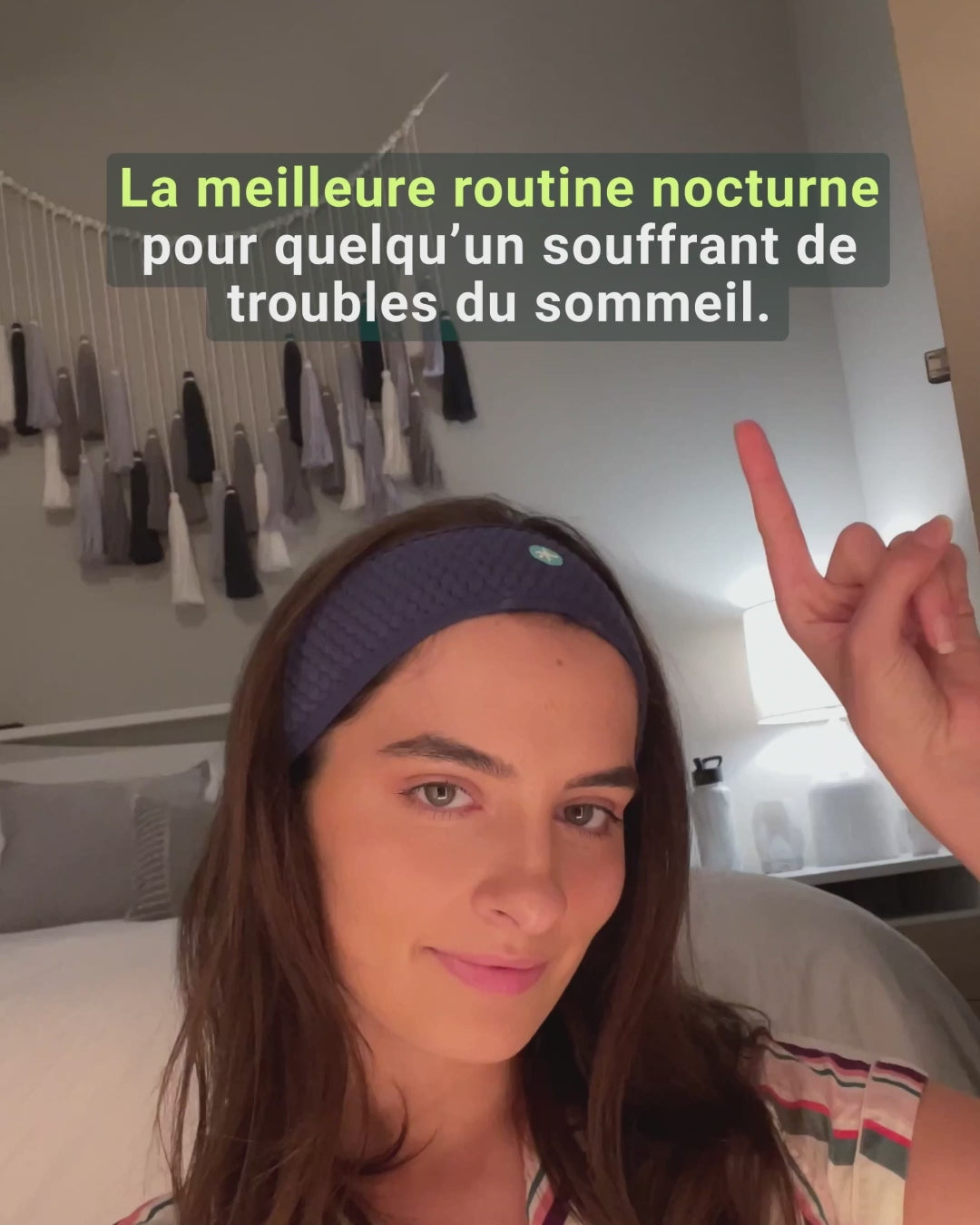 « Des écouteurs extra-plats qui sont intégrés pour que tu puisses dormir même sur le côté avec quand même dans les oreilles. Alors soit tu peux mettre de la musique bien sûr pour t'endormir mais tu as aussi des séances d'hypnose, de méditation guidé de d'ASMR. »